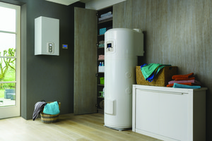 Aquanext Opti est une solution hybride qui combine un chauffe-eau thermodynamique et une chaudière à condensation. L'eau chaude sanitaire est assurée par le ballon thermodynamique, qui utilise l'énergie de l'air pour préchauffer l'eau à 40°C. Le complément est assuré par la chaudière, qui produit également le chauffage. Economique et silencieux, Aquanext Opti est la solution idéale pour les maisons individuelles neuves.